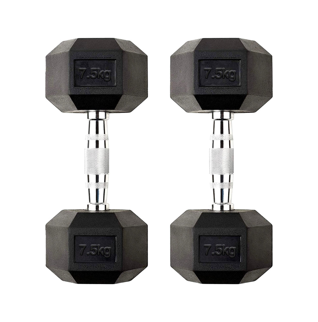 Home Gym 7.5kg Dumbbell Compact Rubber Coated Hex Weights with Cast Iron Core & Knurled Chrome Handles