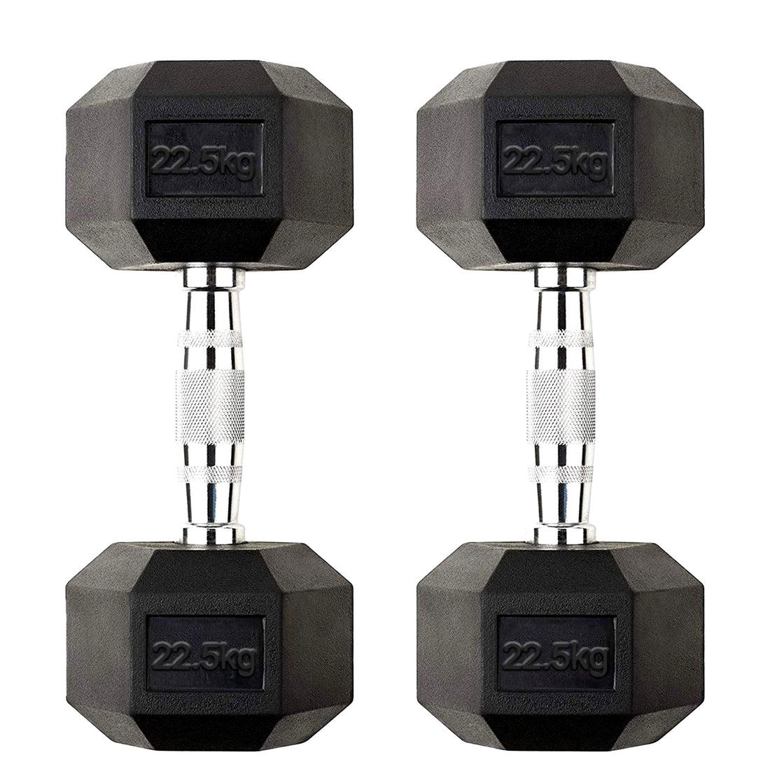 Professional 22.5 kg Hex Dumbbells – Rubber Coated Cast Iron Pair with Anti Roll Design & Chrome Handles for Home Gym Workouts UK