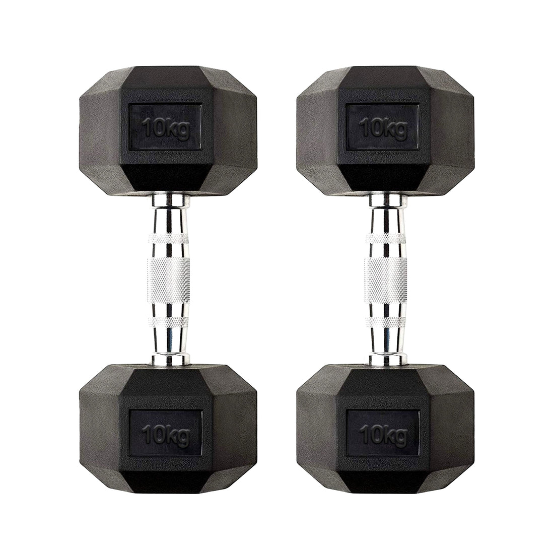 Strength Training with 10kg Dumbbell Rubber Coated Hex Weights with Cast Iron Core & Chrome Knurled Handles for Home Gym Use