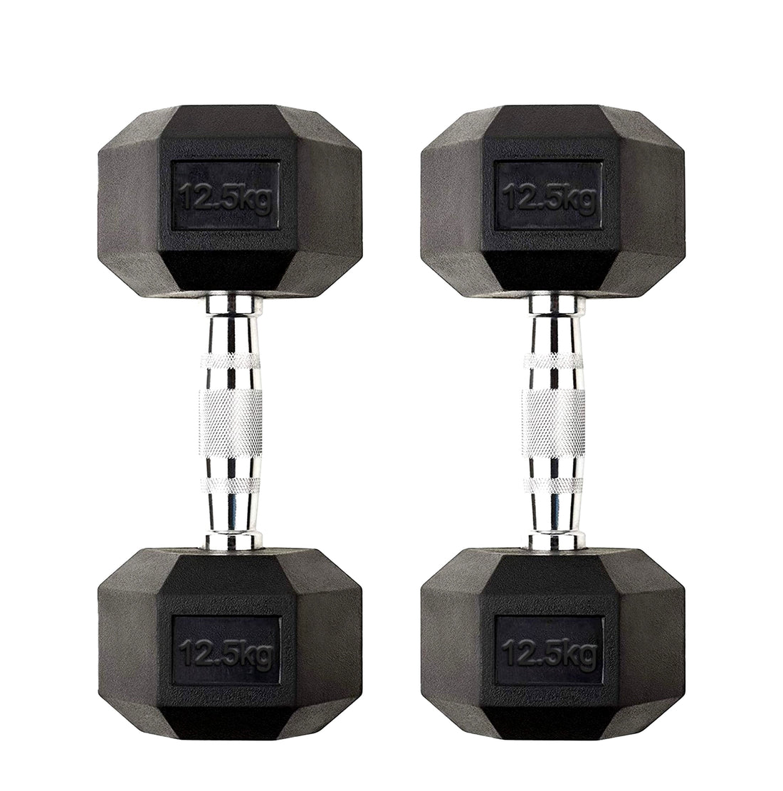 Rubber Hex Dumbbell 12.5kg – Solid Cast Iron Weights with Anti Roll Design & Chrome Knurled Handles for Strength Workouts at Home