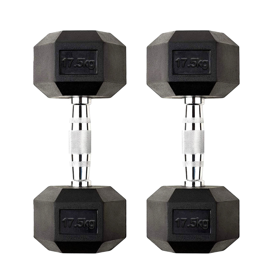 Versatile 17.5 kg Hex Dumbbell Set – Rubber Coated Cast Iron with Ergonomic Chrome Knurled Handles & Anti Roll Heads for Home Strength UK