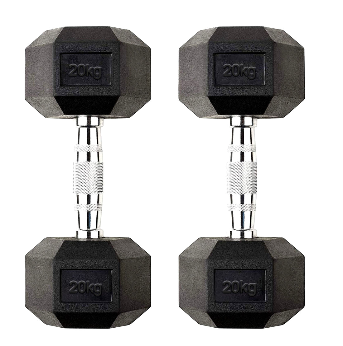 Strength-Focused 20 kg Hex Dumbbell Pair – Rubber Coated Cast Iron, Knurled Chrome Handles & Anti Roll Design for Home Gym UK